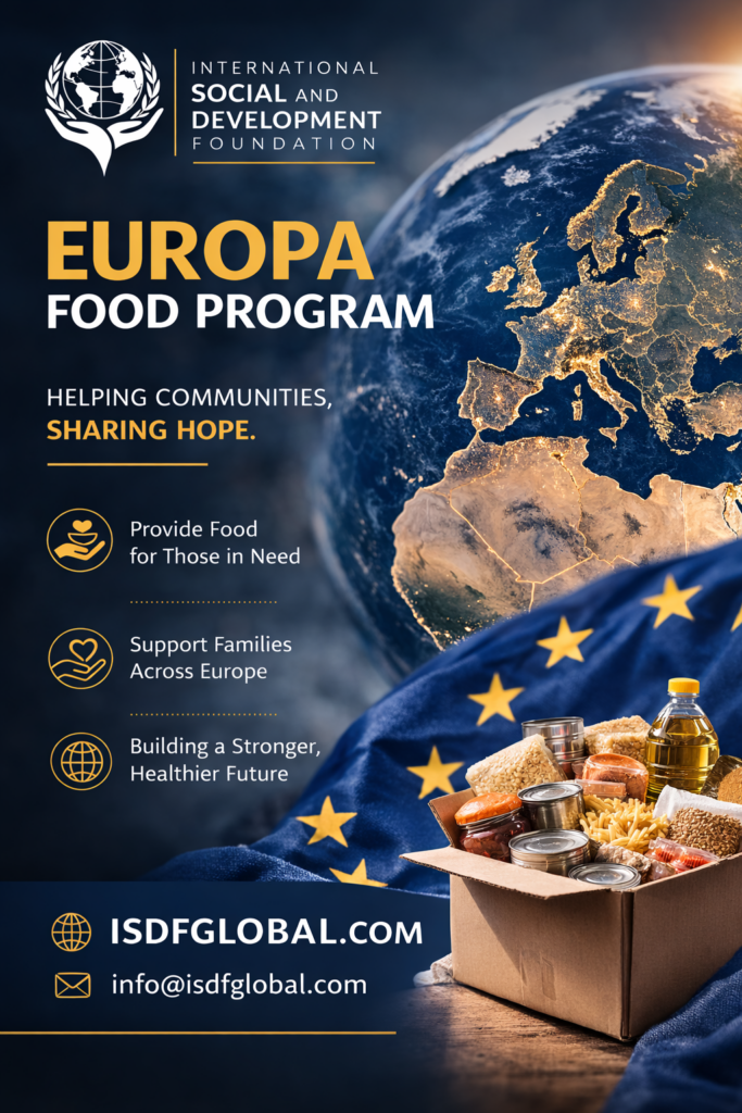 The ISDFGLOBAL – International Social and Development Foundation Global Food Program is an international humanitarian and social initiative whose main objective is to provide food assistance and basic support to people in need. The program focuses on communities where poverty, social exclusion, and economic difficulties prevent many individuals and families from accessing sufficient and nutritious food.